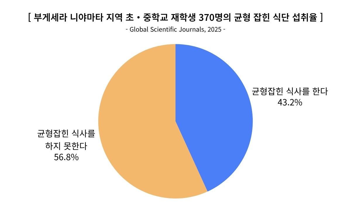 [ 부게세라 니야마타 지역 초·중학교 재학생 370명의 균형 잡힌 식단 섭취율(Global Scientific Journals, 2025) ]